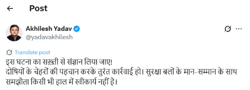 वहीं, इस मामले में अब सियासत भी गरमा गई है. समाजवादी पार्टी के प्रमुख अखिलेश यादव ने वायरल वीडियो को पोस्ट करते हुए दोषियों के खिलाफ सख्त कार्रवाई की मांग की है. उन्होंने ट्वीट कर कहा कि सुरक्षा बलों के सम्मान से कोई समझौता नहीं किया जाएगा.