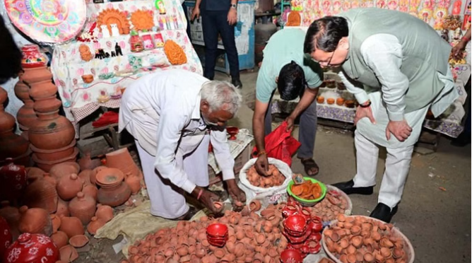 उत्तराखंड: मुख्यमंत्री पुष्कर सिंह धामी ने खटीमा बाजार से खरीदे मिट्टी के दीये, दुकानदारों को दी दीपावली की शुभकामनाएं