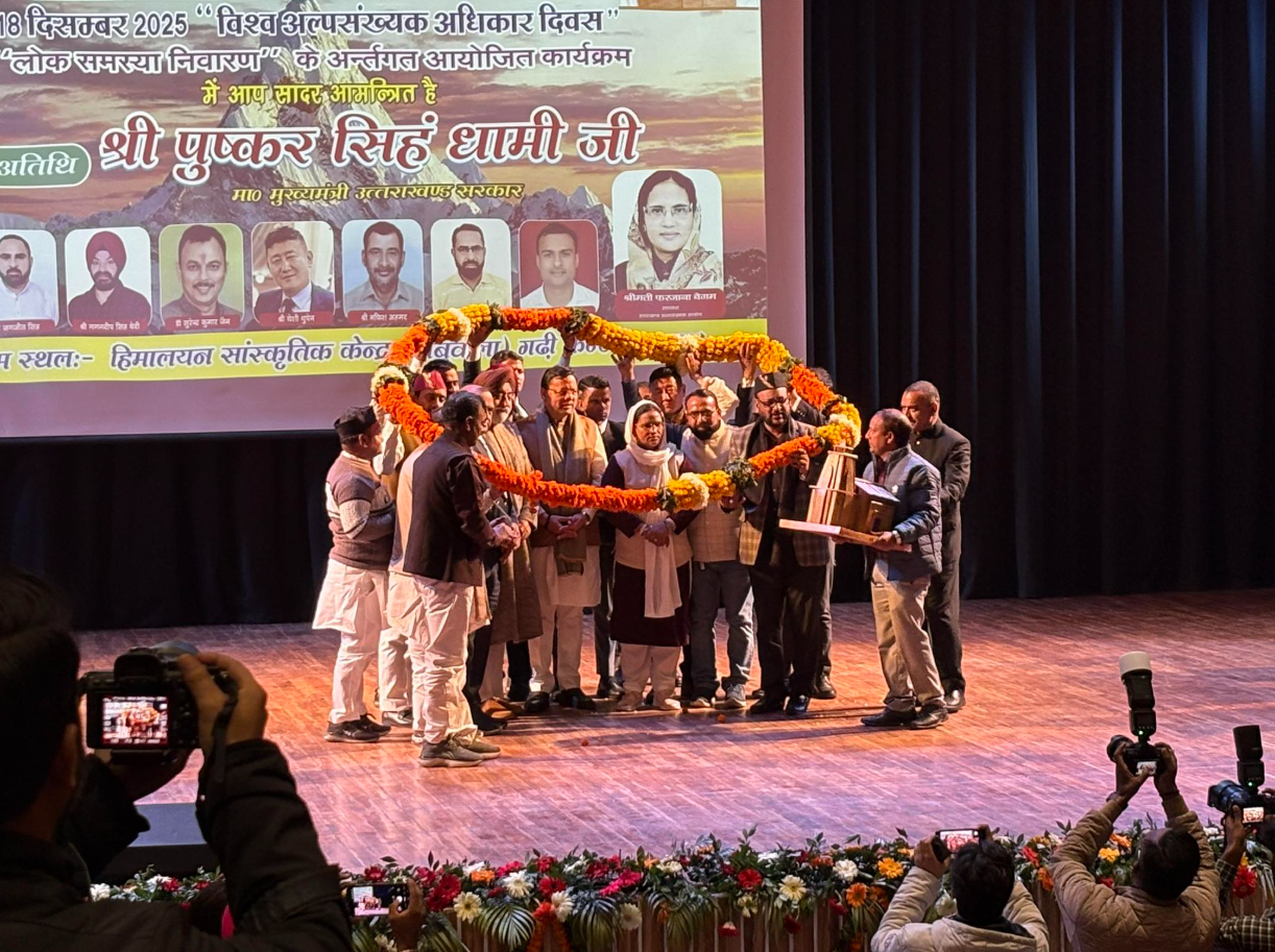 देहरादून। उत्तराखंड अल्पसंख्यक आयोग द्वारा विश्व अल्पसंख्यक अधिकार दिवस के अवसर पर देहरादून स्थित हिमालयन सांस्कृतिक केंद्र, गढ़ी कैंट में भव्य कार्यक्रम का आयोजन किया गया। कार्यक्रम में मुख्यमंत्री पुष्कर सिंह धामी मुख्य अतिथि के रूप में शामिल हुए। उनके साथ अल्पसंख्यक कल्याण मंत्री शादाब शम्स और उत्तराखंड वक्फ बोर्ड के अध्यक्ष भी मौजूद रहे।
